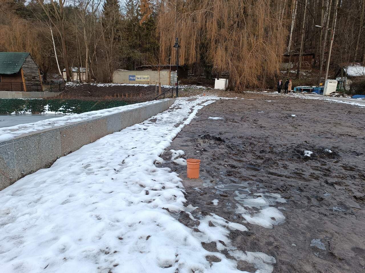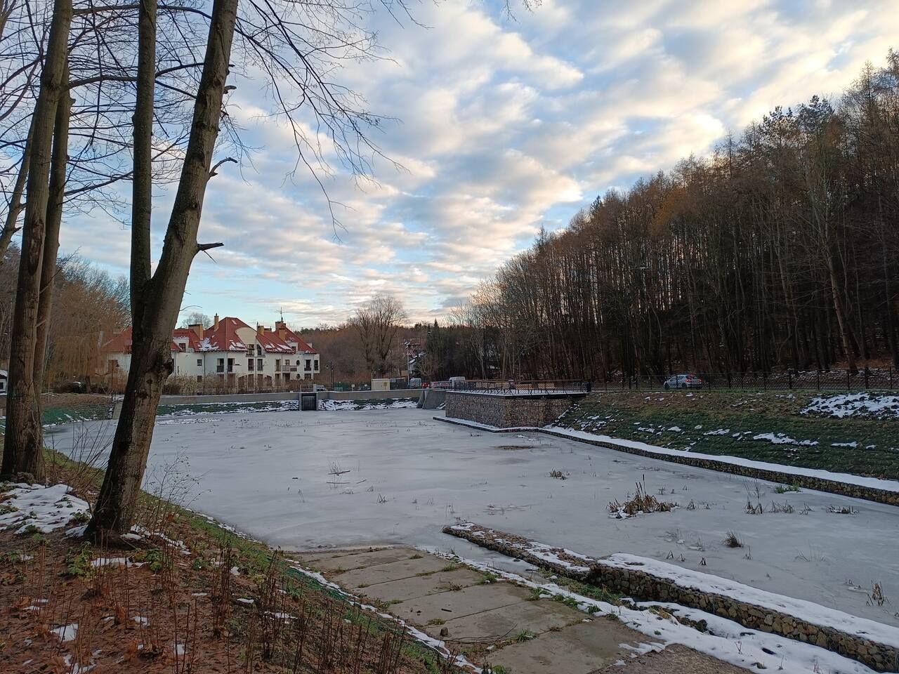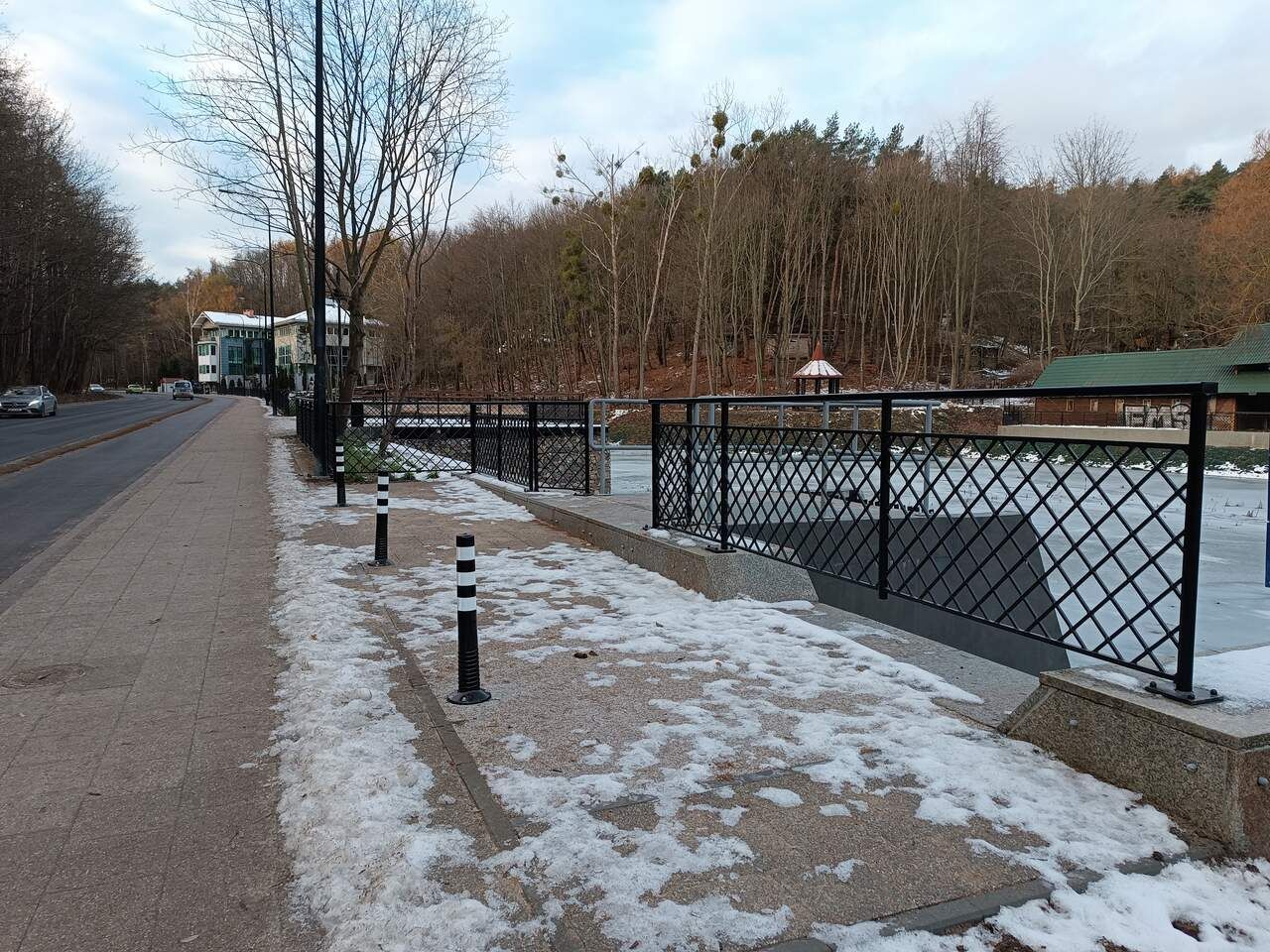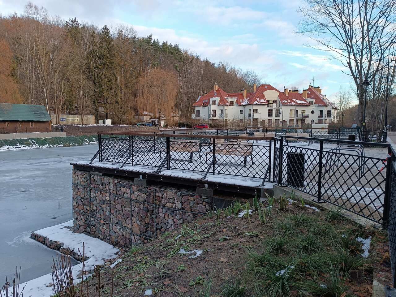 - rozebranie istniejącej budowli wylotowej do Jaśkowego Potoku oraz pozostałości konstrukcji kładki drewnianej i nieczynnych latarni ulicznych;