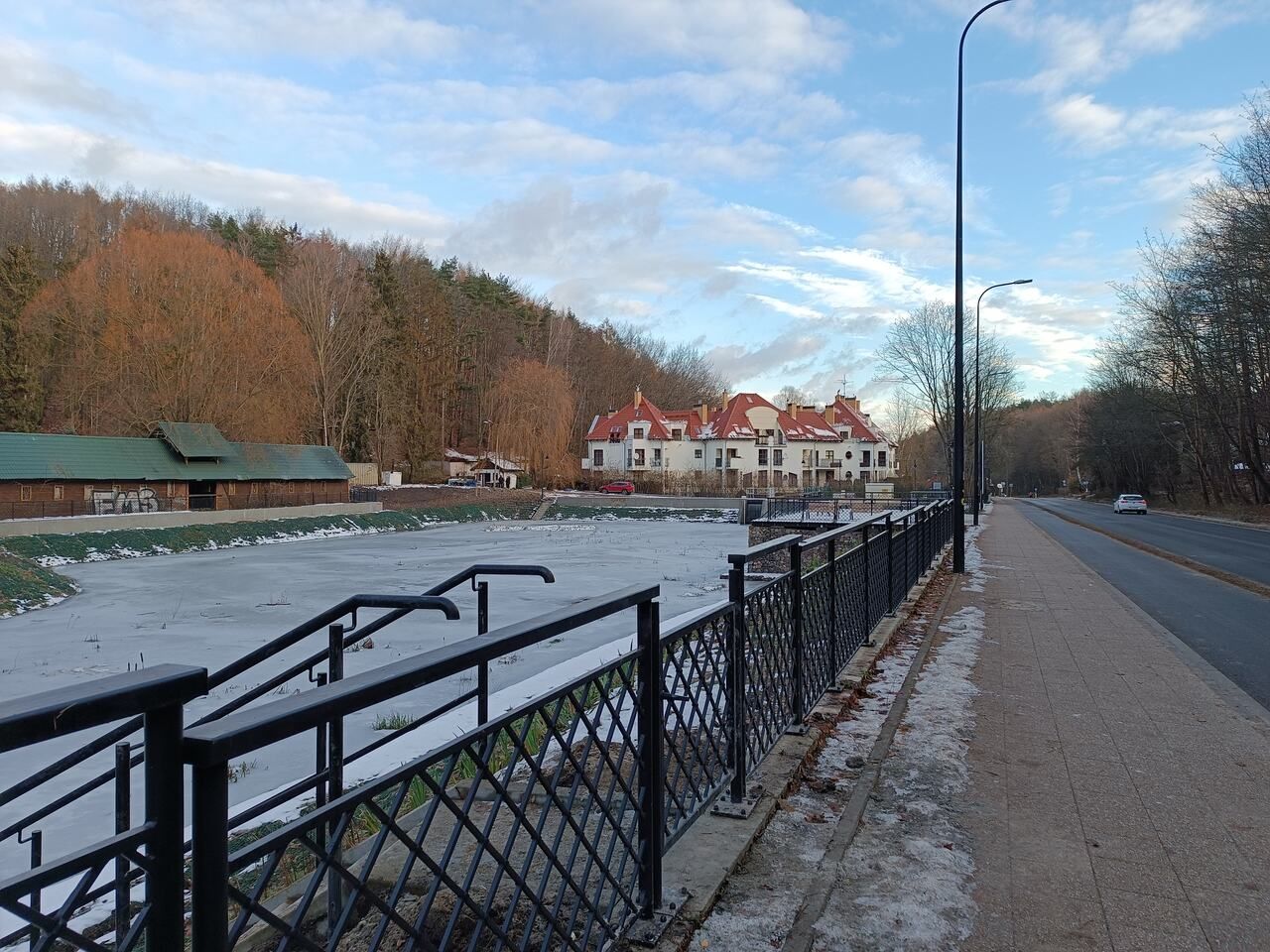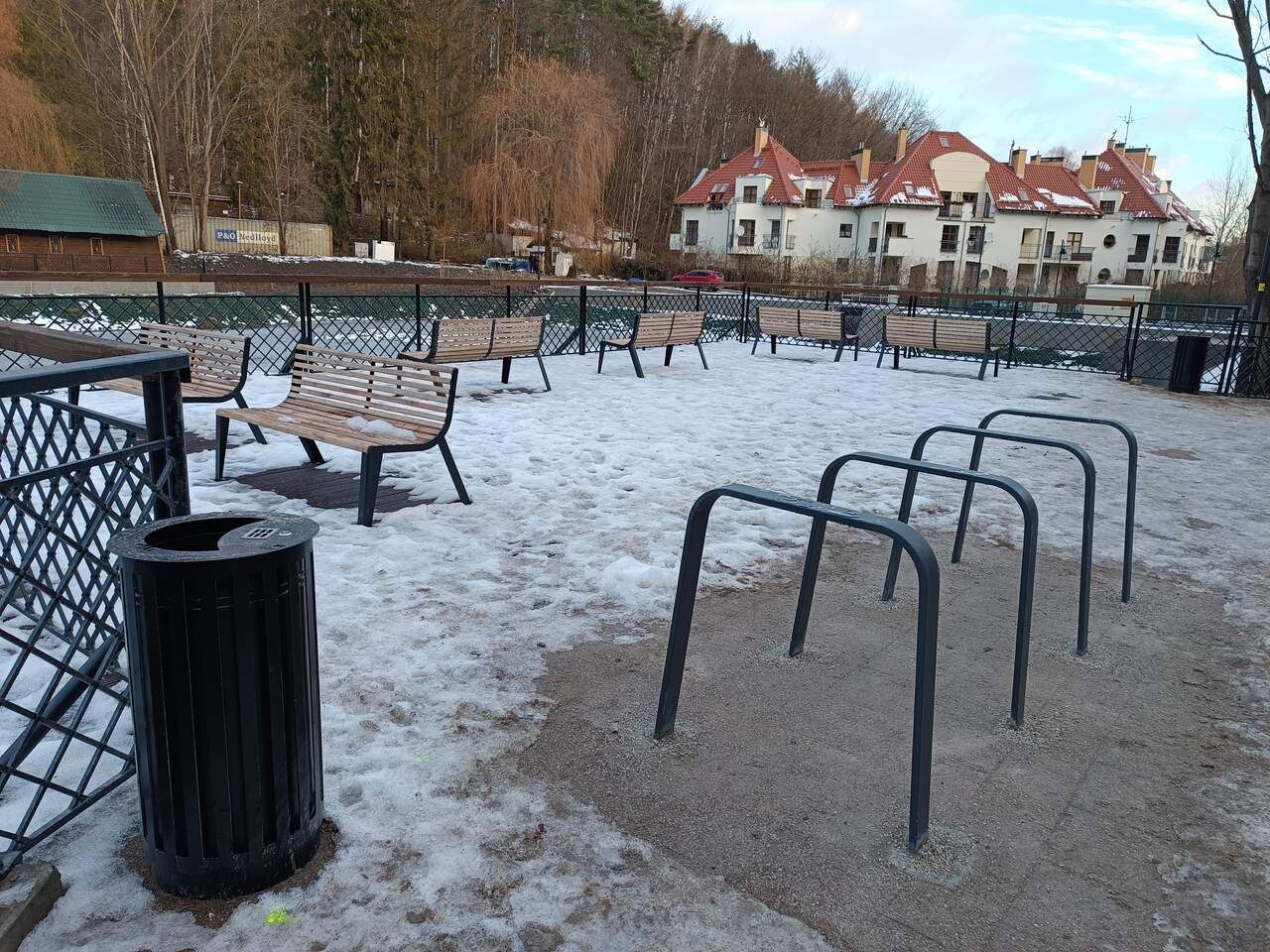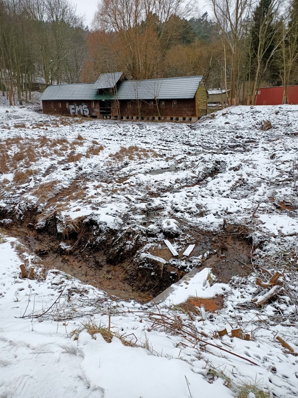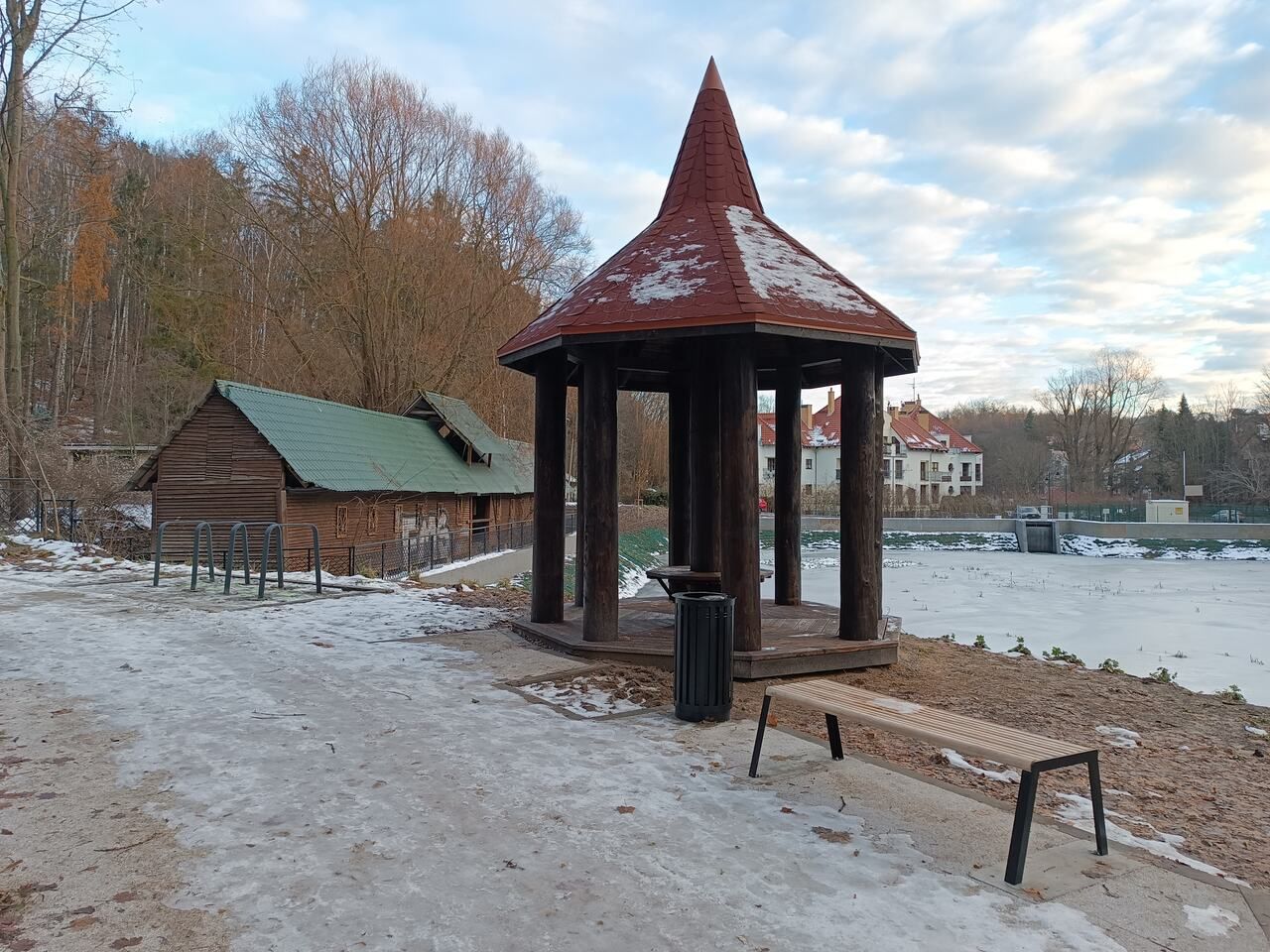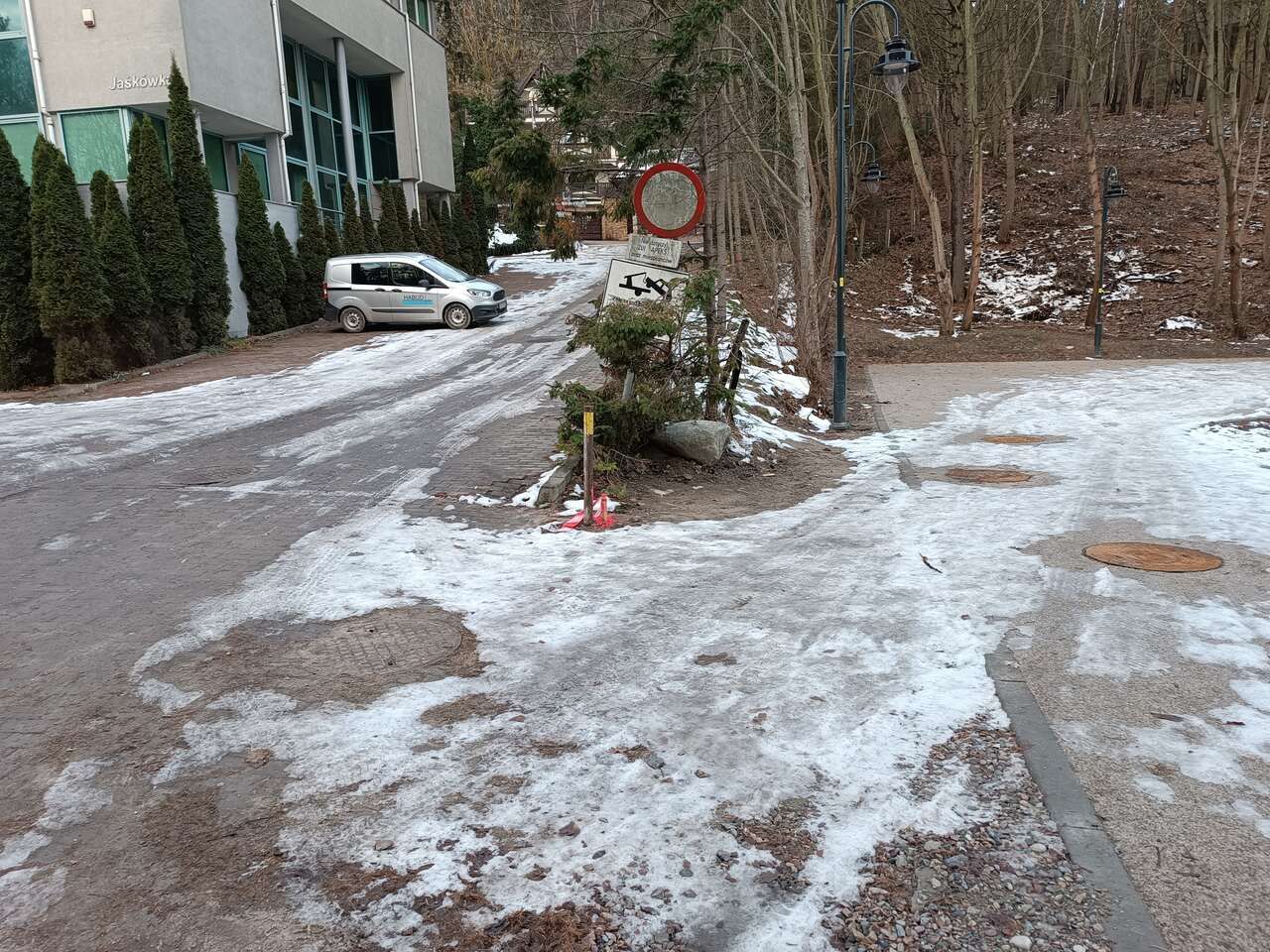- rozebranie istniejącej budowli wylotowej do Jaśkowego Potoku oraz pozostałości konstrukcji kładki drewnianej i nieczynnych latarni ulicznych;