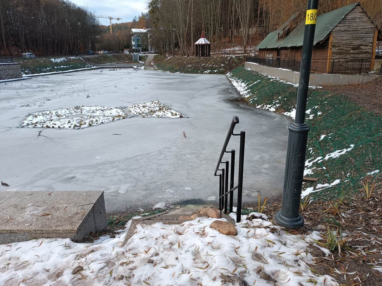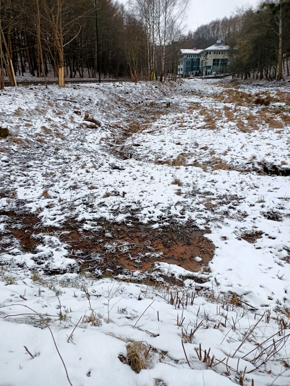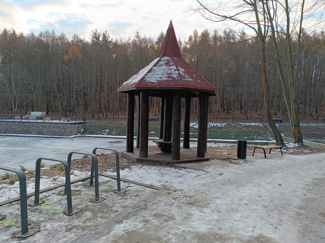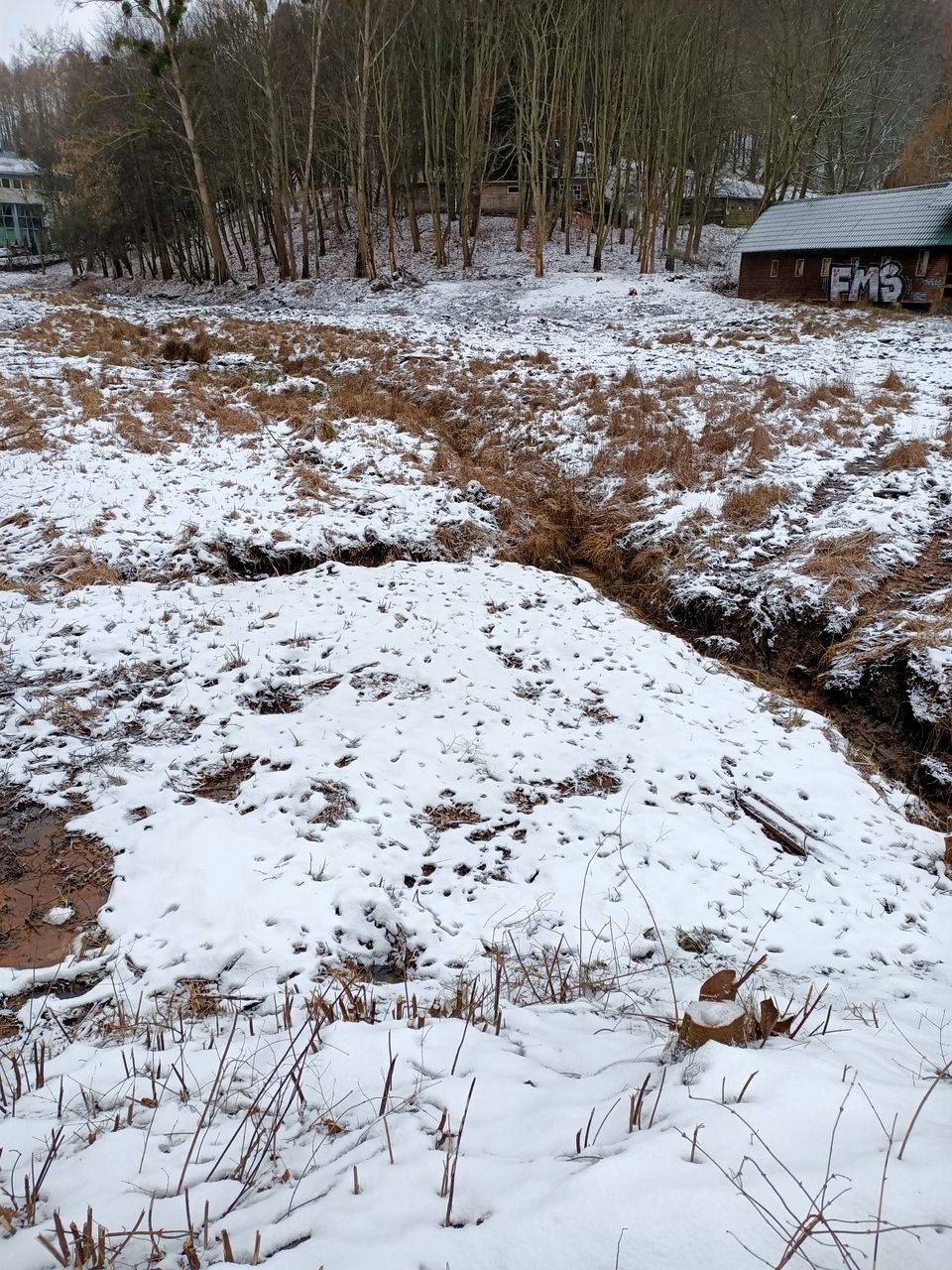- rozebranie istniejącej budowli wylotowej do Jaśkowego Potoku oraz pozostałości konstrukcji kładki drewnianej i nieczynnych latarni ulicznych;