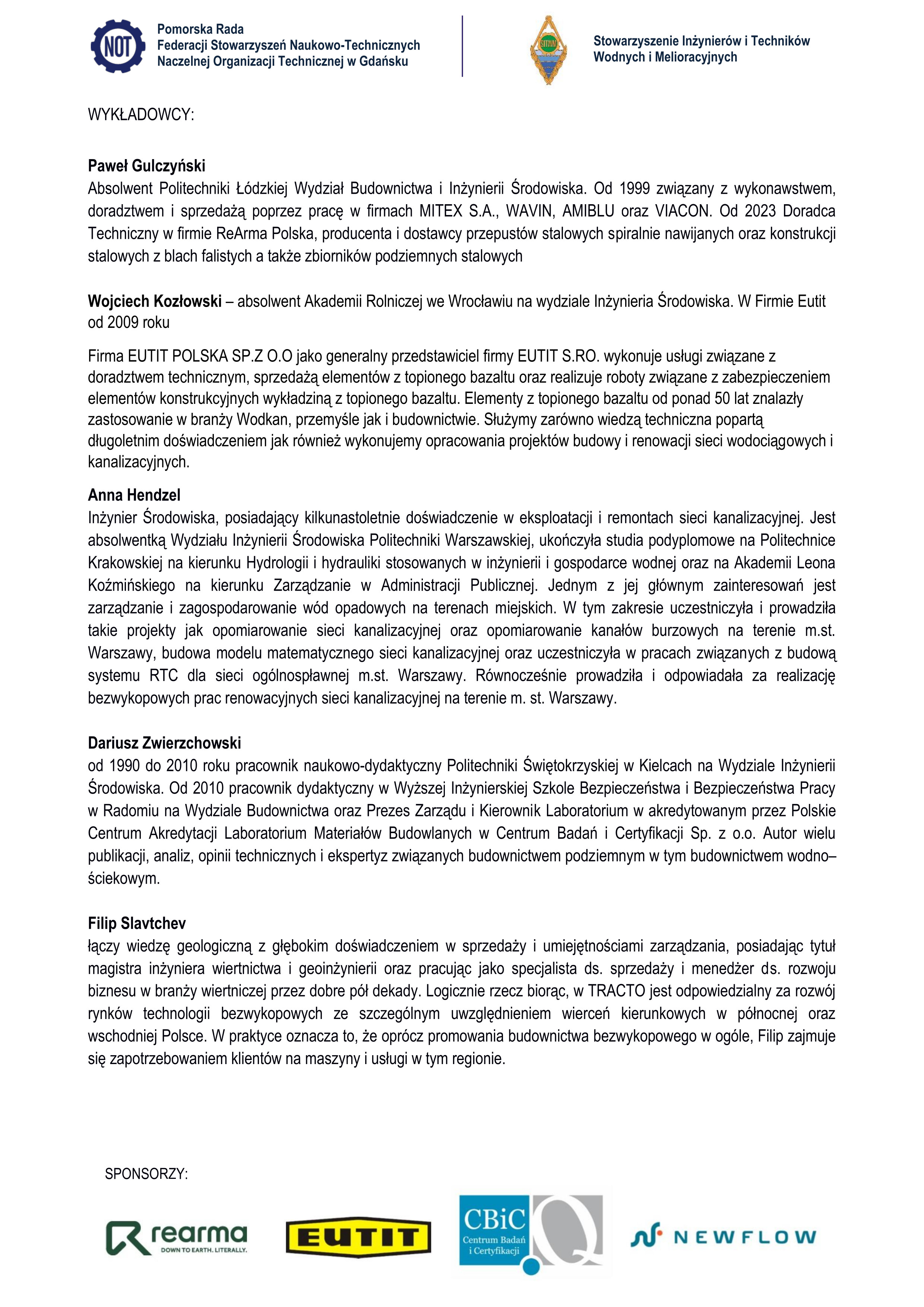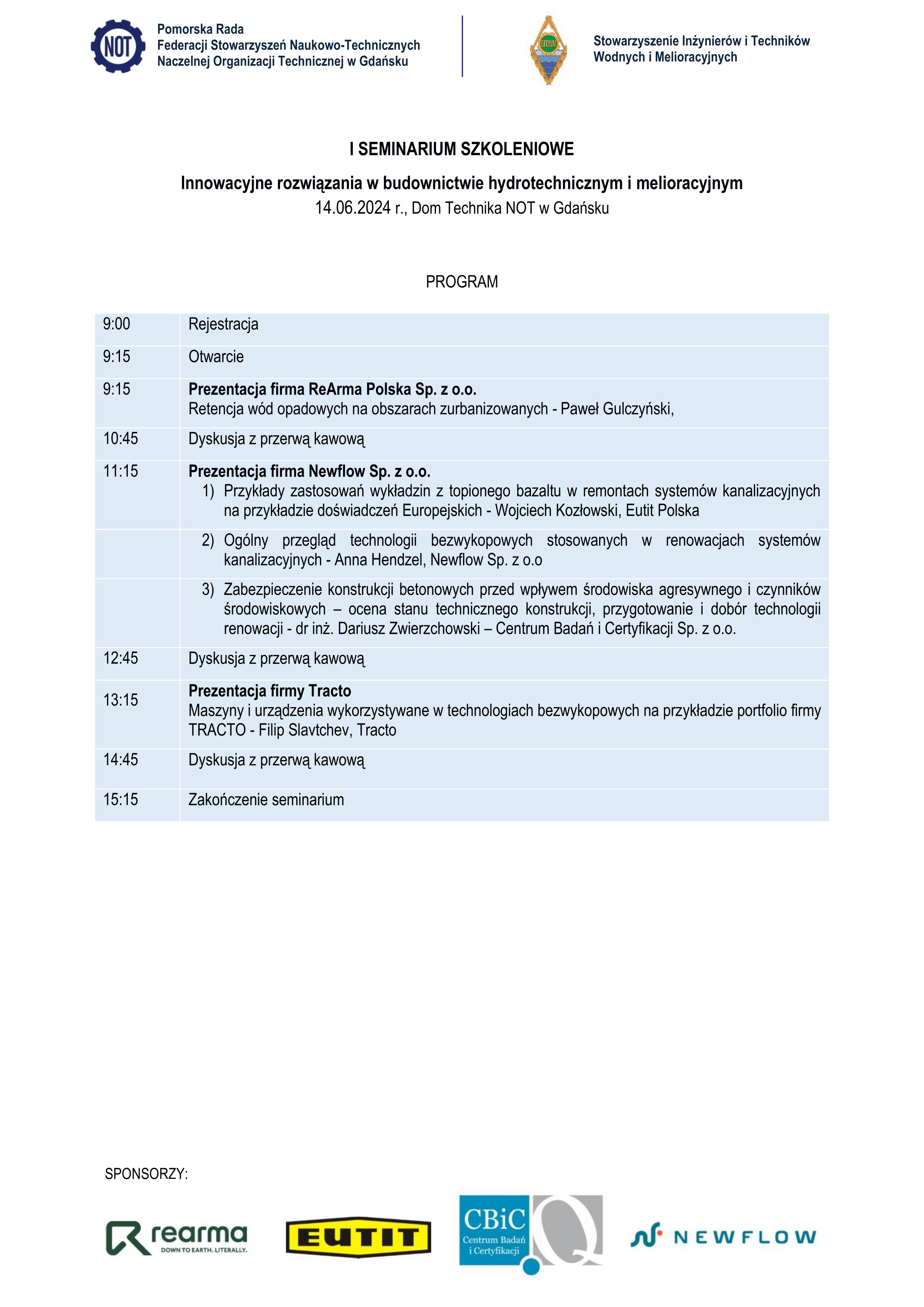 W zeszły piątek (14.06.2024) uczestniczyliśmy w seminarium szkoleniowym Innowacyjne rozwiązania w budownictwie hydrotechnicznym i melioracyjnym, które odbyło się w Domu Technika NOT w Gdańsku. Było to pierwsze seminarium z cyklu szkoleń jest skierowany do wszystkich uczestników procesu budowlanego od Projektantów, Kierowników Budowy po Inspektorów Nadzoru oraz Inwestorów.